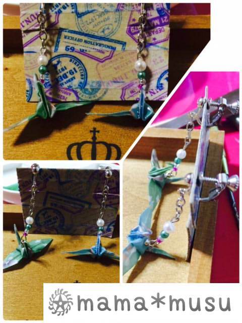 好きな色を聞いて折り鶴イヤリングを作ってみました!(*´Д`)